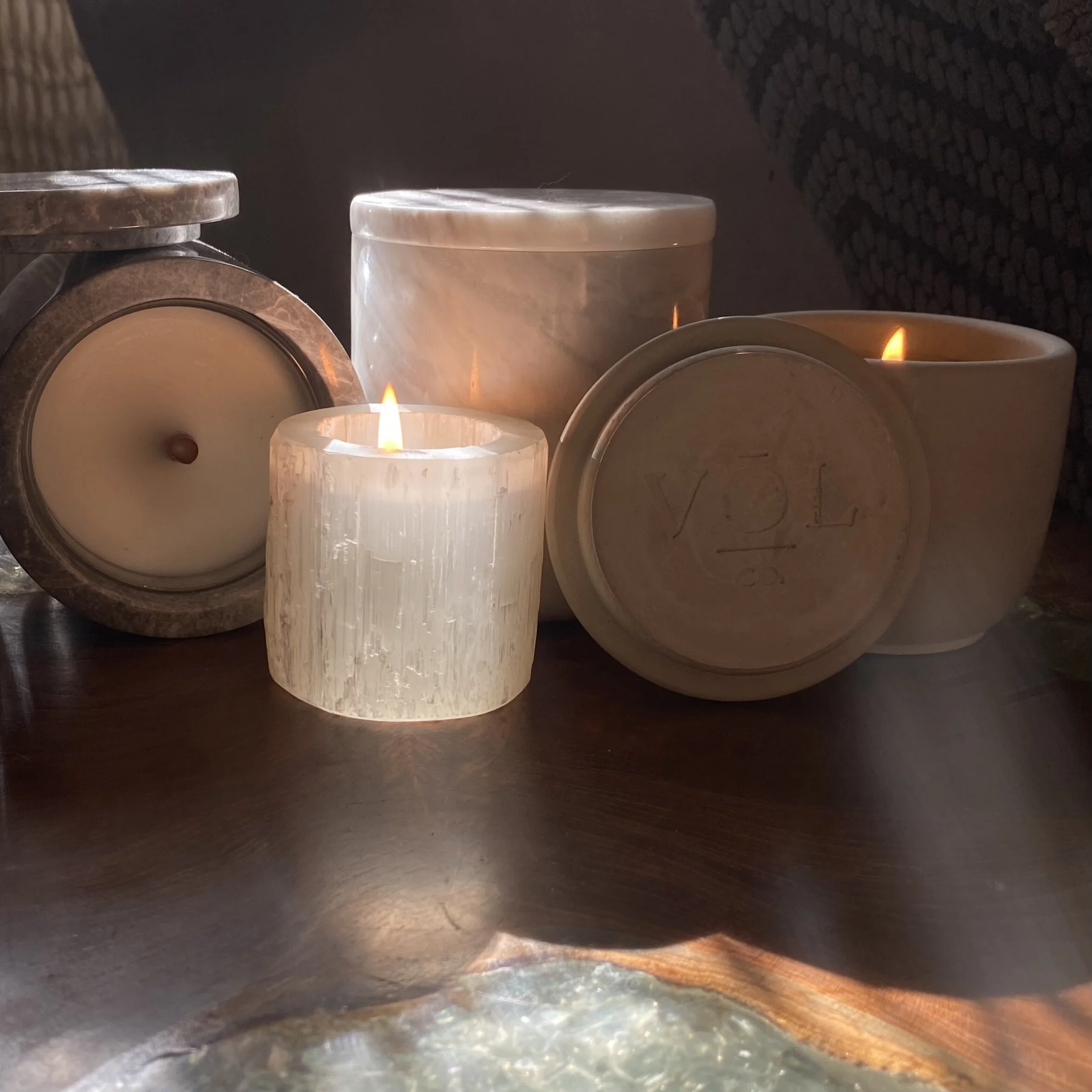 This Black Marquina Marble candle holder with matching lid is a timeless piece to bring earth’s beauty into any space. The classic carved natural stone can be filled with our 8 ounce glass candles, unlimited times for life. As a sustainable candle option, after finishing the candle you can clean out or recycle the glass and order a refill candle or repurpose the vessel for another use. Clear glass candle purchased separately. See Classic Beeswax Blend Candle.