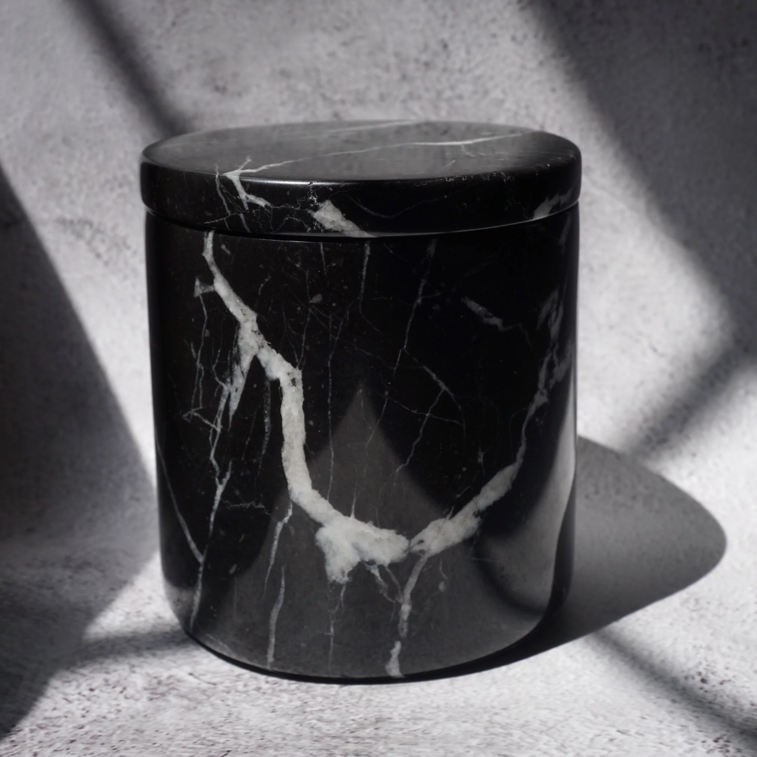 Each onyx vessel and lid is unique and no two are the same. The inside of the vessel is treated with a non-toxic sealant to preserve the raw beauty of natural stone.