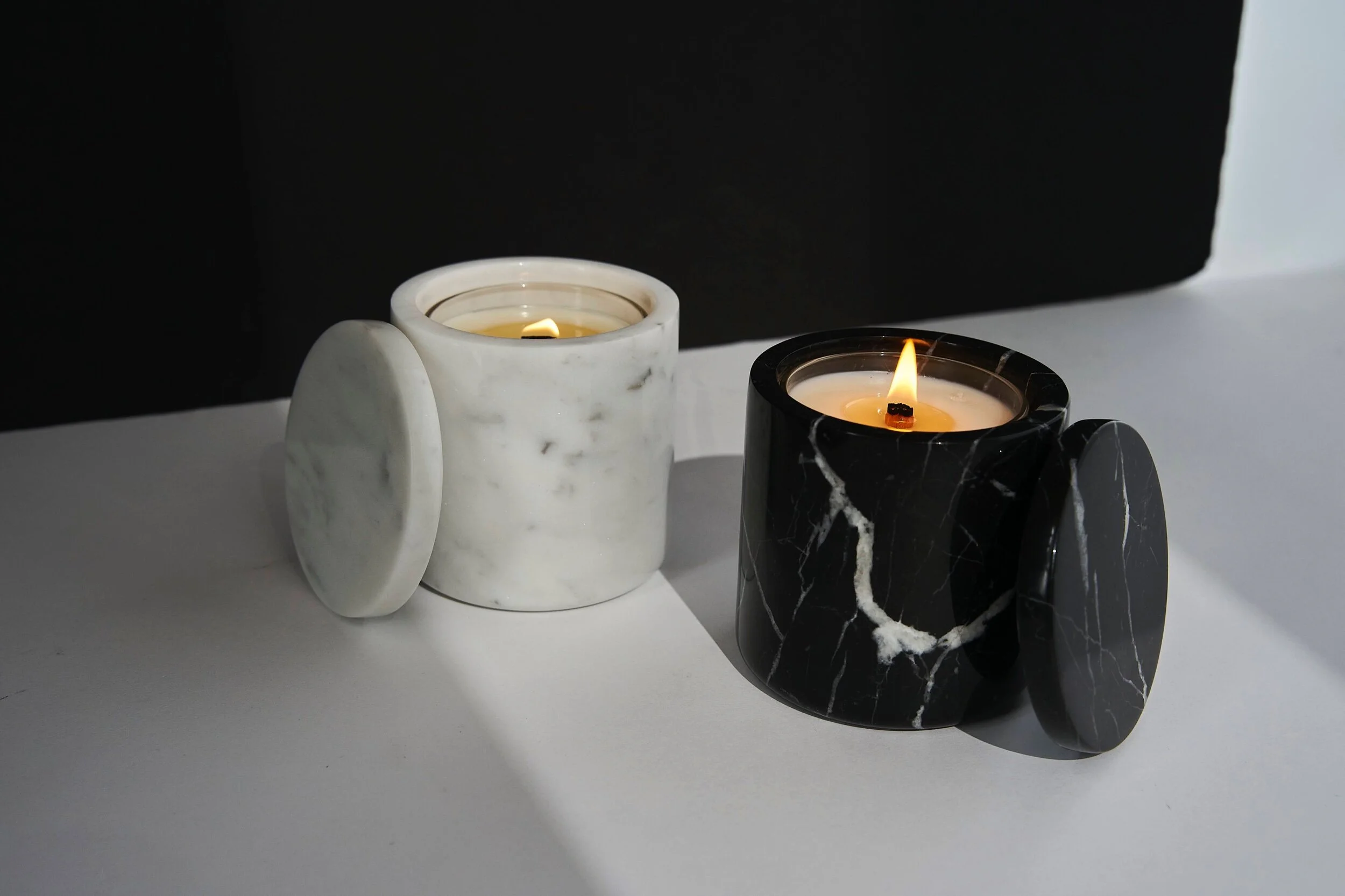 This Natural Onyx candle holder with matching lid is a timeless piece to bring earth’s beauty into any space. The beautiful carved natural stone can be refilled with our clear glass candle, unlimited times for life. As a sustainable candle option, after finishing the candle you can clean out or recycle the glass and order a refill candle or repurpose the vessel for another use.